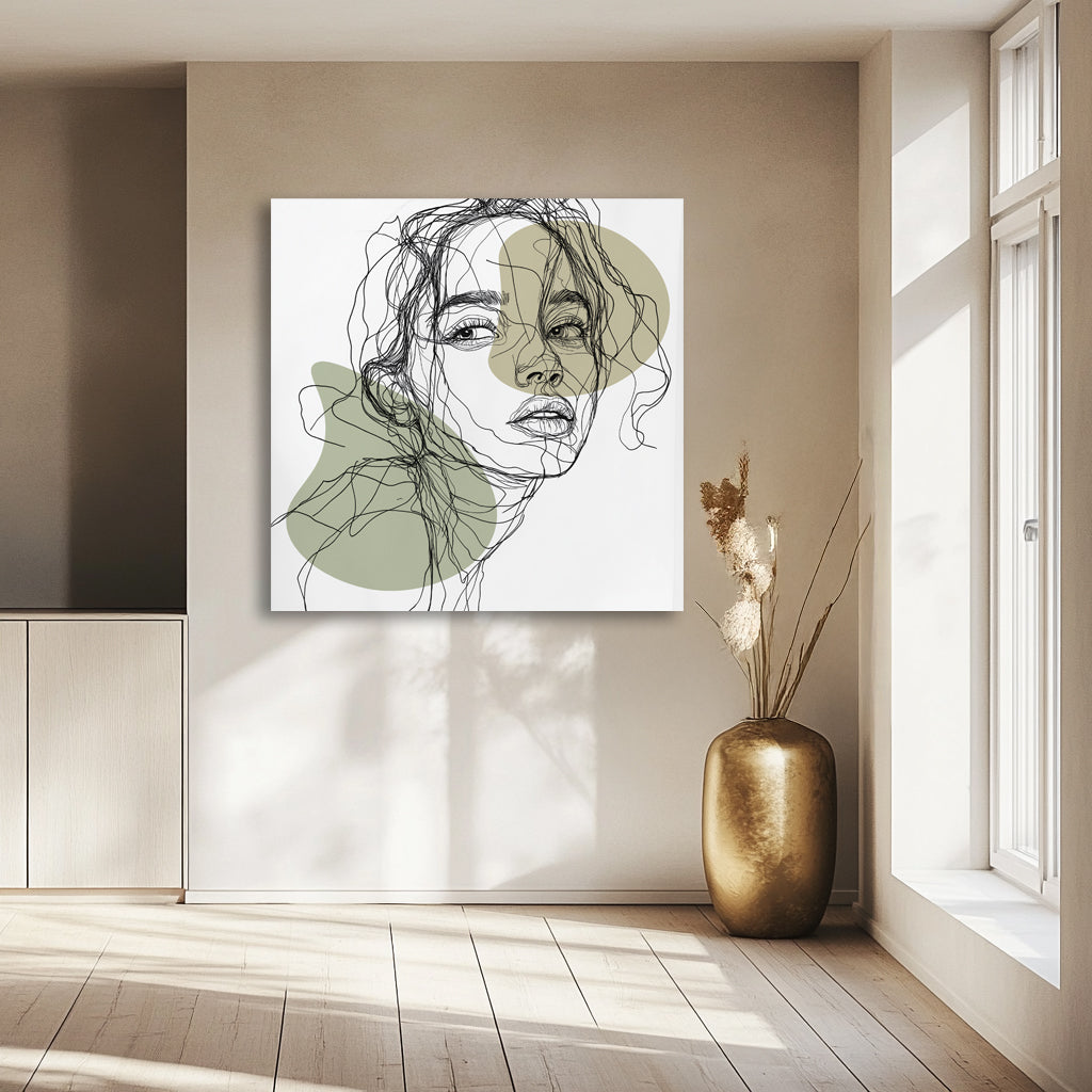 Dit in lijn uitgevoerde portret is verkrijgbaar in vier variaties met ieder zijn eigen kleurnuances. De organische, gekleurde vormen verzachten het contrast van de zwarte lijn.