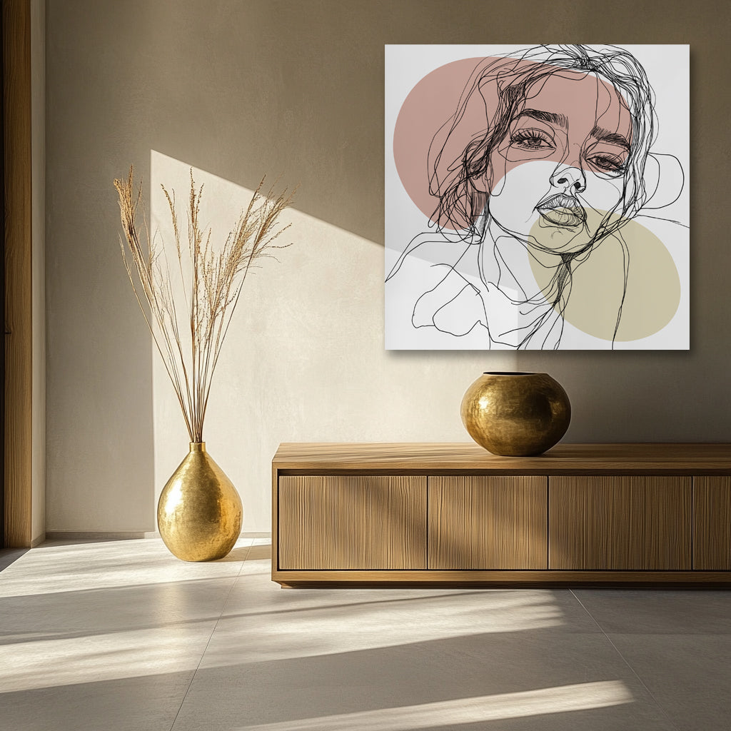 Dit in lijn uitgevoerde portret is verkrijgbaar in vier variaties met ieder zijn eigen kleurnuances. De organische, gekleurde vormen verzachten het contrast van de zwarte lijn.