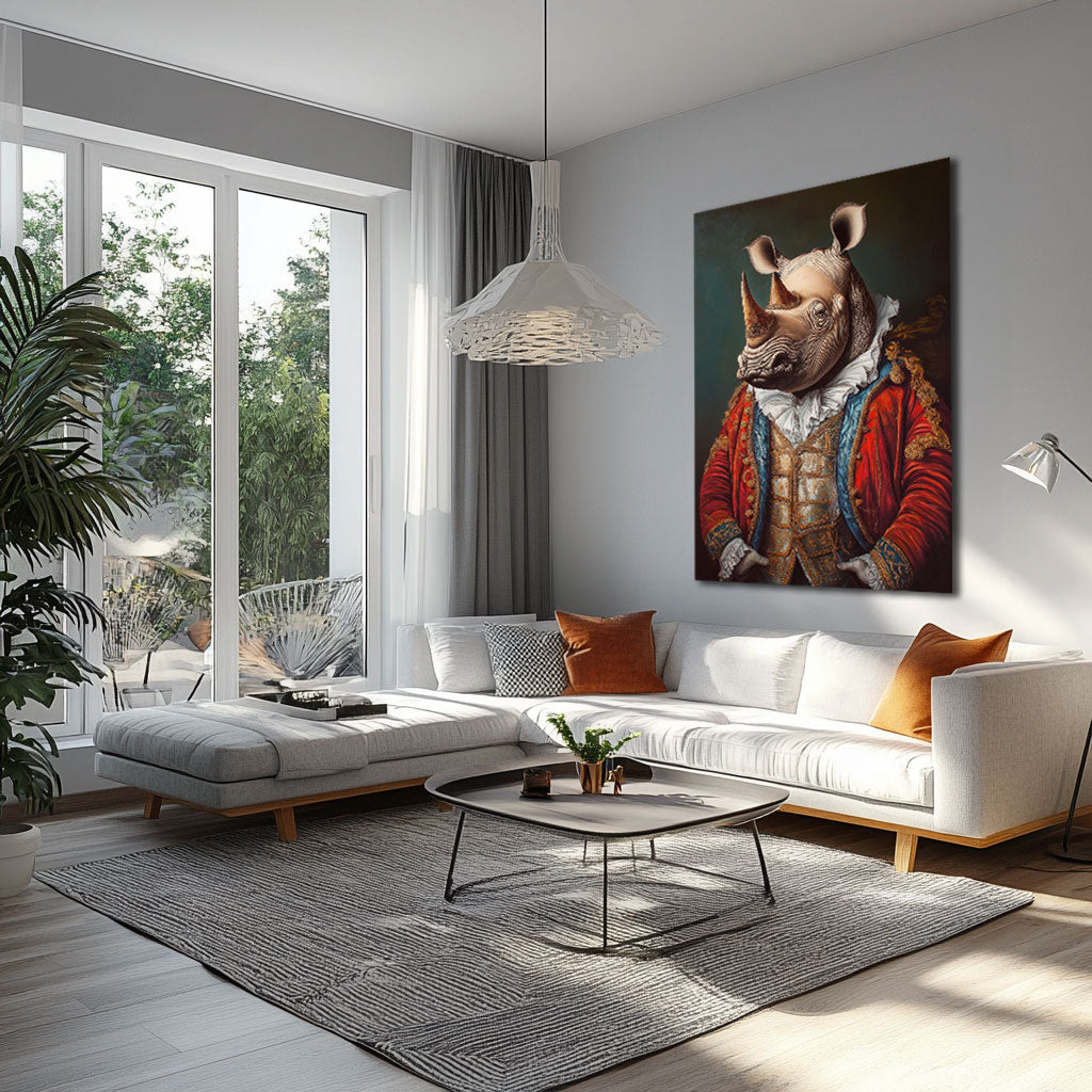 Uit de serie 'The Big Five' is dit 'The Rhinoceros'. De vijf groten van het Afrikaanse continent uitgebeeld als edelheren van weleer.